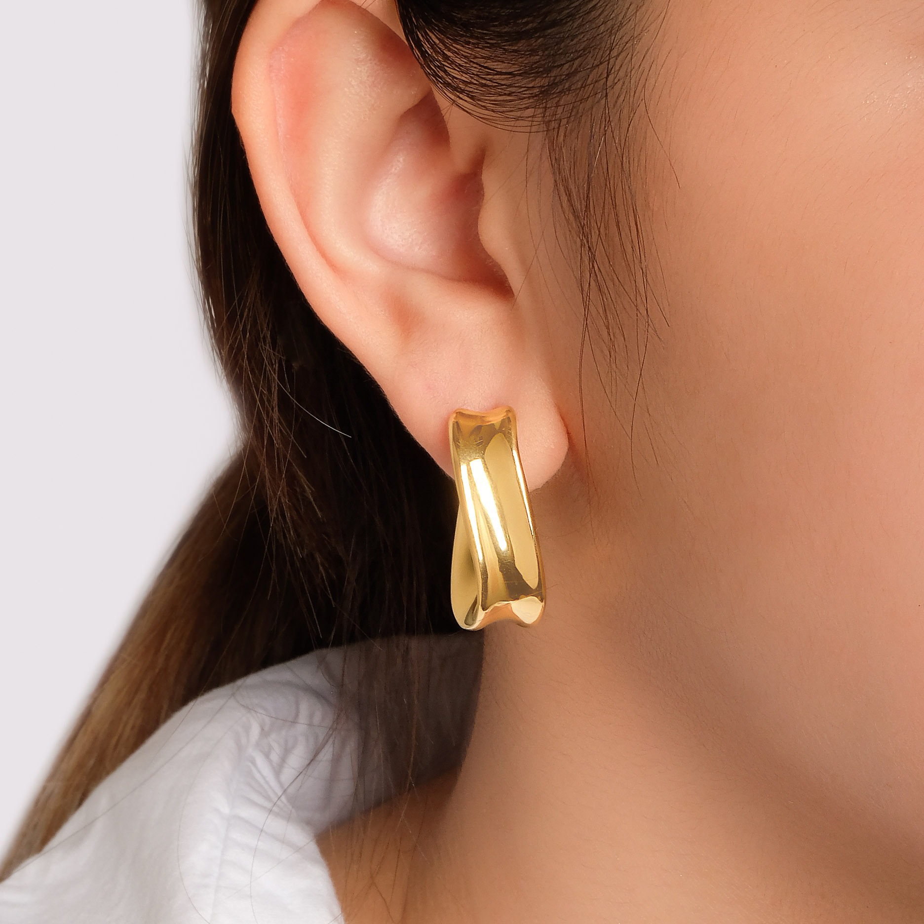 ₱68,700.00Curved silhouette earrings in electroformed hollow 18K Italian yellow gold by Oro Galleria Fine Jewelry. -