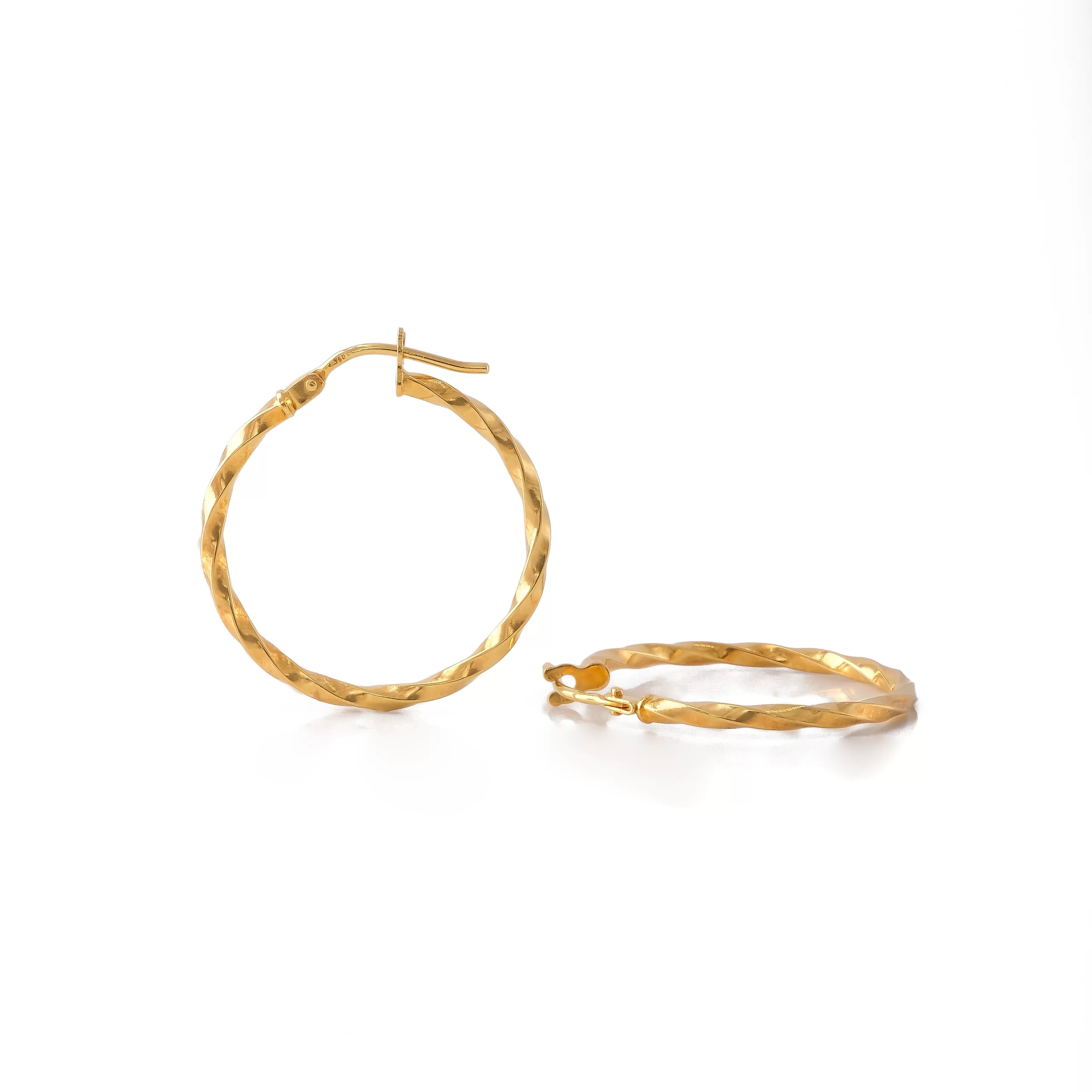 Textured and twisted hoop earrings in hollow 18K Italian yellow gold by Oro Galleria Fine Jewelry.
